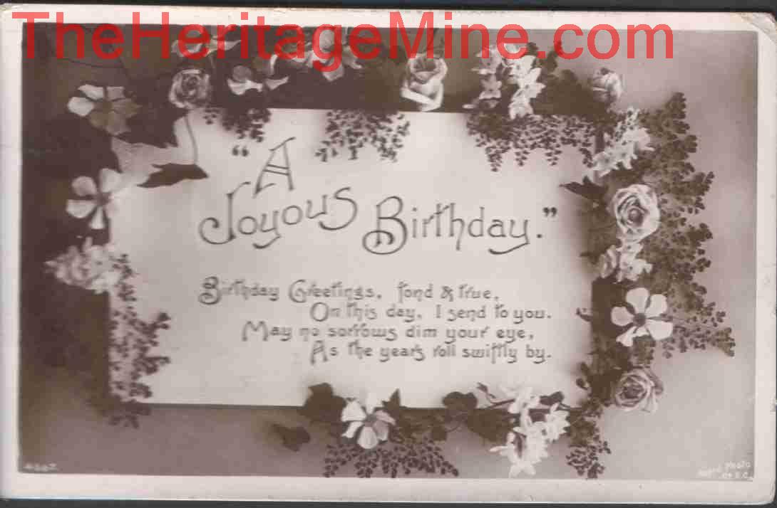 Birthday card, posted May 20th 1909. 1901 census: Address: Potash Lane, Hethel, Bracon Ash ROWE, John, Head, Married, M, 48, 1853, Farmer, Sibton, Suffolk. ROWE, Alice, Wife, Married, F, 48, 1853, Kelsale, Suffolk. ROWE, Hilda, Daughter, Single, F, 24, 1877, Mothers Help, Kelsale, Suffolk. ROWE, Edgar, Son, Single, M, 21, 1880, Farmer's Son, Dennington, Suffolk. ROWE, Sybil, Daughter, Single, F, 16, 1885, Mothers Help, Godwick, Norfolk. ROWE, Pansy, Daughter, Single, F, 13, 1888, Godwick, Norfolk. ROWE, Ruby, Daughter, Single, F, 10, 1891, Gt Ryburgh, Norfolk. ROWE, Dorothy, Daughter, Single, F, 7, 1894, Gt Ryburgh, Norfolk. Contents may contain public sector information licensed under the UK Open Government Licence v3.0