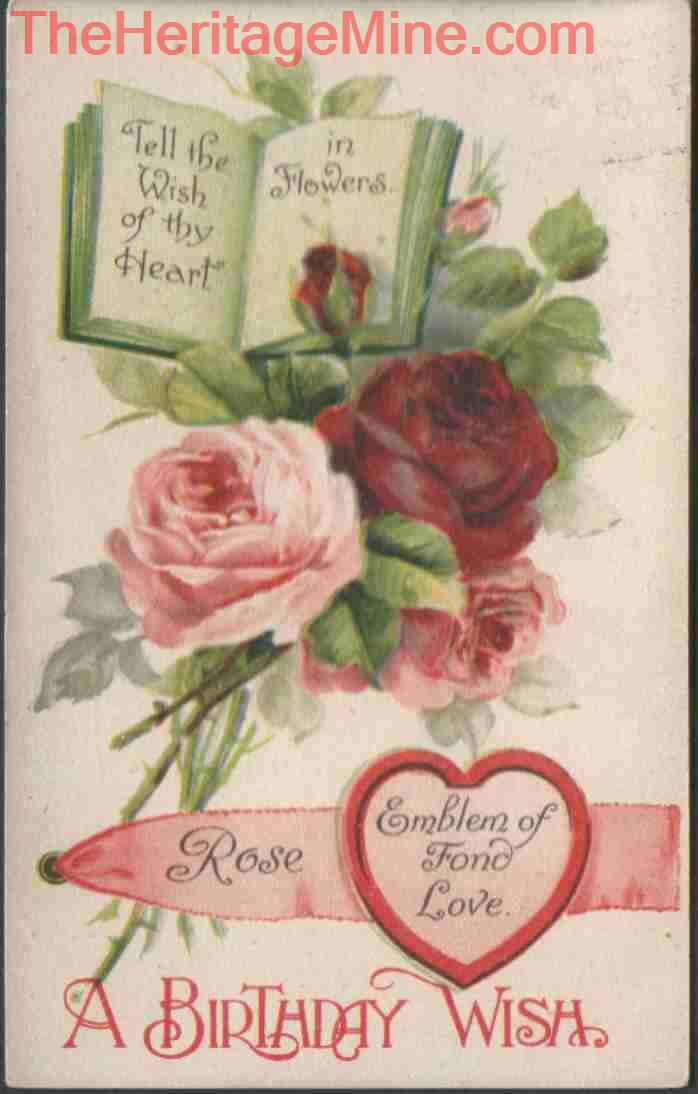 Birthday card, posted Jan 5th 1909. 1901 census, 5 Gainsboro Terrace, Felixstowe; William Saunders, Head, born abt 1870 Mistley, Essex. Ellen J Saunders,Wife, abt 1866, born Bramford, Suffolk. Kate Saunders, Daughter, abt 1893, born Felixstowe, Suffolk.