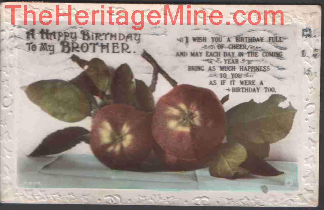 Card is celebrating a Brother's Birthday and is signed 'Minnie' (presumably  Ernest's sister).