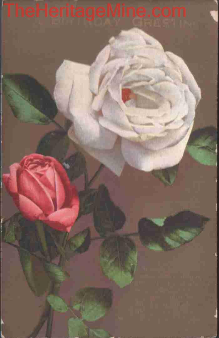 | Birthday card, posted 7th march, 19?? The stamp attached was used between 1912 and 1918. Posted by daughter Louise from Tooting.